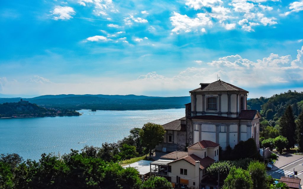 In der Gemeinde Leggiuno, mit Blick auf das Ostufer des Lago Maggiore, liegt die Einsiedelei Santa Caterina del Sasso. Die Eremitage, die sich regelrecht an eine Felswand klammert, ist zweifellos eines der eindrucksvollsten Ausflugsziele des Lago Maggiore.Über diesen Ort am Lago Maggiore wurde schon sehr viel geschrieben und die Art und Weise wie er erbaut wurde und die Geschehnisse verleihen ihm schon etwas Mystisches oder gar Heiliges. Der Fels, in den das gesamte Bauwerk eingelassen ist, hängt buchstäblich über den Köpfen der Besucher. Es ist weißer Kalkstein, der sich im See spiegelt und den „Hallo-Effekt“ des Ganzen verstärkt. Wenn man mit dem Boot vom See kommt, erscheint das Bild einer Kirche mit solch harmonischen Formen die zwischen dem Felsen und dem Wasser schwebt regelrecht unwirklich. Sie können die Einsiedelei von Santa Caterina del Sasso entweder auf dem Landweg oder auch per Schiff erreichen. Der Zugang über den See ist definitiv der eindrucksvollste. Ein sehr kleiner Hafen bietet den Anlegesteg für die Dampfer die fahrplanmäßig Touristen an Land bringen um die Einsiedelei von Santa Caterina del Sasso zu besuchen. Da bleibt dem Besucher schon der Atem weg, bei so einem Spektakel! Schon von weitem ist dieses unbedingt sehenswerte historische Bauwerk, am Felsen „klebend“, zu erkennen.