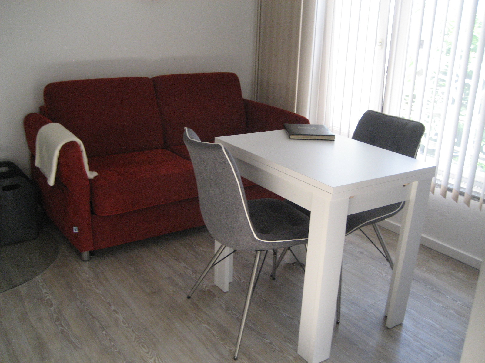 Sie umfasst die Bereiche Schlafen, Wohnen/Essen und die Küche sowie eine Nasszelle mit Dusche und WC